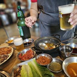 This place is awesome! The ambience, food, service are all superb! My girlfriend and I are regulars here, and we have yet to have a negative experience. They have AYCE soups, mac & cheese, steamed egg, banchan, fried rice, plenty of meat options. Their pork belly and brisket are absolutely delicious! The only downside I'd say is time it takes to cook the meat even when the grill is on high. But they don't rush you, and it always gives us plenty of time to talk & enjoy the vibes. Keep it up Sura!